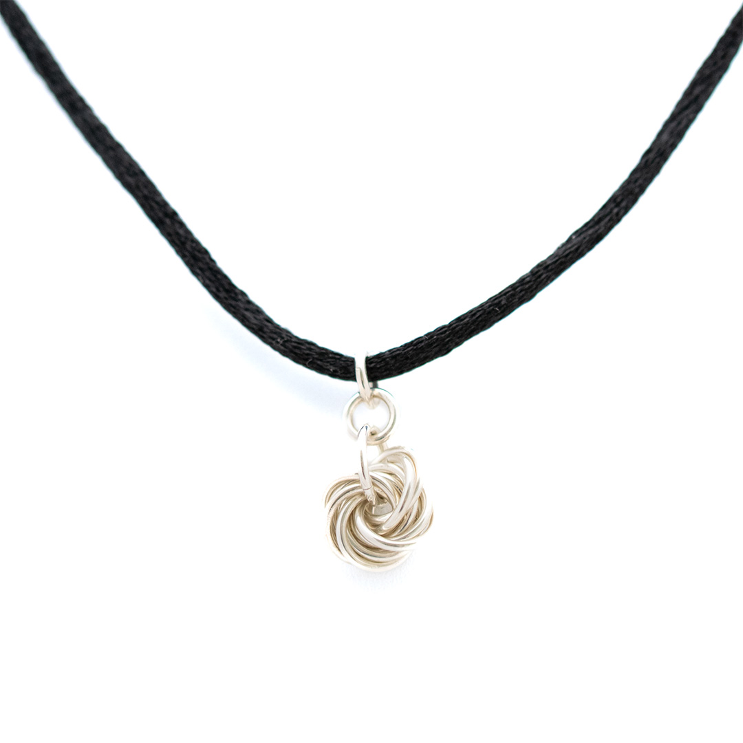 Silverhänget är 1,2 cm i diameter och består av 12 ringar av sterlingsilver. Silvertråden är 1 mm tjock och ringarna är 0,8 mm i innerdiameter. Hela halsbandet väger bara 4,26 gram och känns lätt att bära.