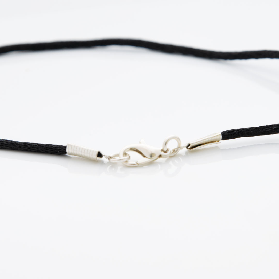 Hängsmycket är 3 cm långt, 1,5 cm brett över det bredaste stället och 1 mm tjockt. Halsbandets totala längd inkl. låset är 48 cm.