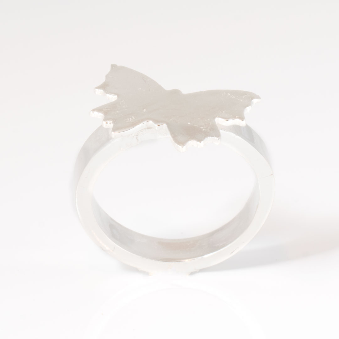 Denna silverring är helt i finsilver utan några pärlor eller stenar. Den är dekorerad med en silverfjäril. Ringskenans tjocklek är 2 mm och fjärilen är 1 mm tjock. Ring med en innerdiameter på 18 mm finns i lager och kan levereras inom 1-3 arbetsdagar. De övriga storlekarna tillverkas efter beställning och har en något längre leveranstid.